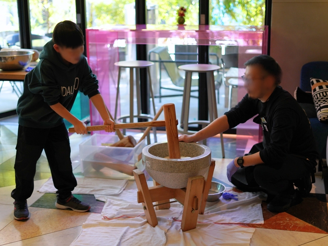 ホテルで餅つきをした後は、ゲストのみなさんで味付けをします。